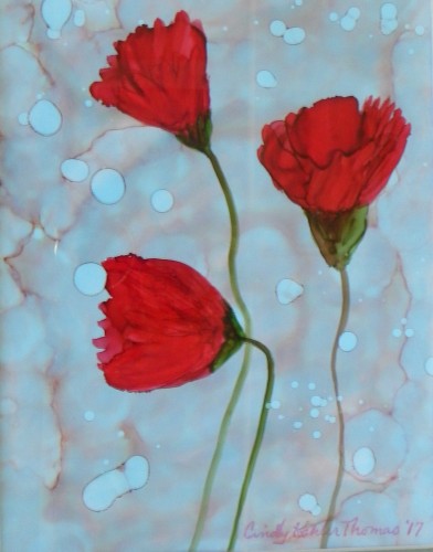 Cindy Kahler Thomas began her artistic journey in her 30's her lifelong friend introduced her to stained glass mosaics. She likes to work with alcohol ink also, as well as, acrylic and mixed media. She has won numerous awards and founded a gallery.